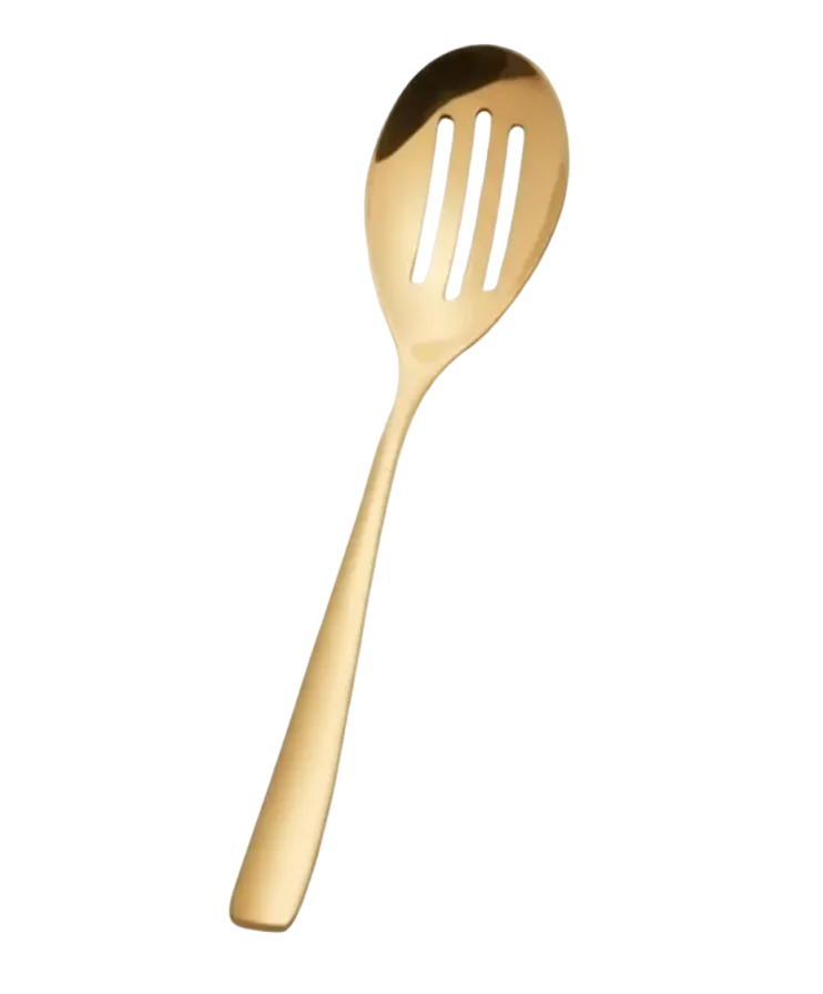 Our gold slotted serving spoon provides an elegant and practical solution for serving foods that require draining. The slotted design allows excess liquid to pass through while maintaining presentation quality.