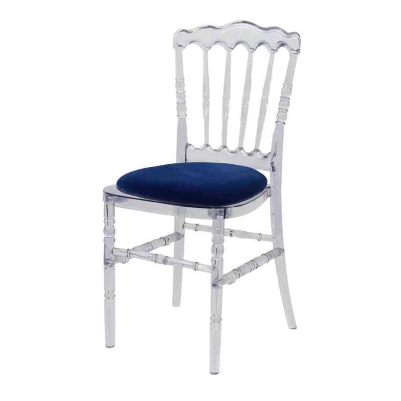 Our Ice (Ghost) Napoleon chairs offer a stylish and contemporary seating option, combining classic Napoleon design with a modern transparent finish. Featuring a clear, solid frame and a comfortable cushioned seat, these chairs add a touch of elegance to any event setting.Perfect for weddings, ceremonies, banquets, and formal occasions, the transparent design works beautifully with both modern and traditional décor, creating a light and sophisticated look. The chairs are sturdy, easy to position, and suitable for both indoor and outdoor use.A popular choice for events where presentation, style, and comfort are equally important.