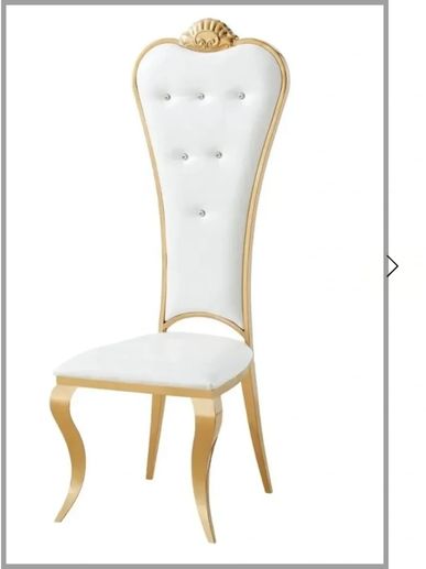 Stylish throne chair with high back, embellished with crystals and accented with gold. Padded seat for comfortable seating. Ideal for bride and groom seat or as celebrant chair.